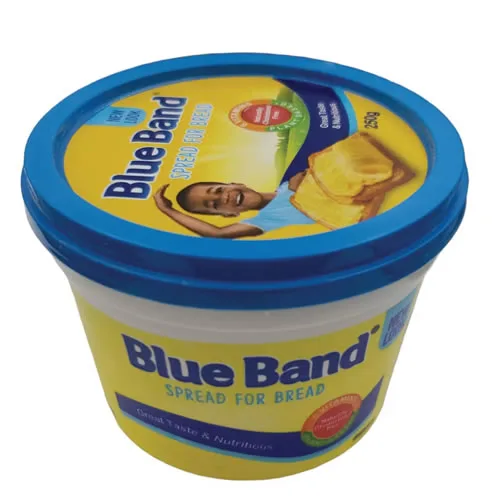 Since 1933 Blue Band has been the trusted breakfast companion across West Africa. This 250 g tub blends creamy vegetable fat with vitamins A, D & E to give your bread, yam or akara that familiar buttery taste—without the refrigeration stress of dairy butter.