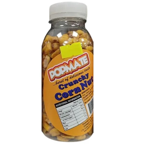 Toasted, not fried, Popmate Corn Nuts deliver a hearty crunch with 50 % less fat than potato chips. The 80 g sachet is chilli-lime flavoured and re-sealable for desk-drawer freshness.